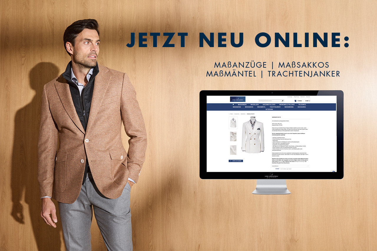 Ab sofort haben Sie die Möglichkeit, auch Ihre Maßanzüge und Sakkos ganz bequem von zu Hause aus zu bestellen.